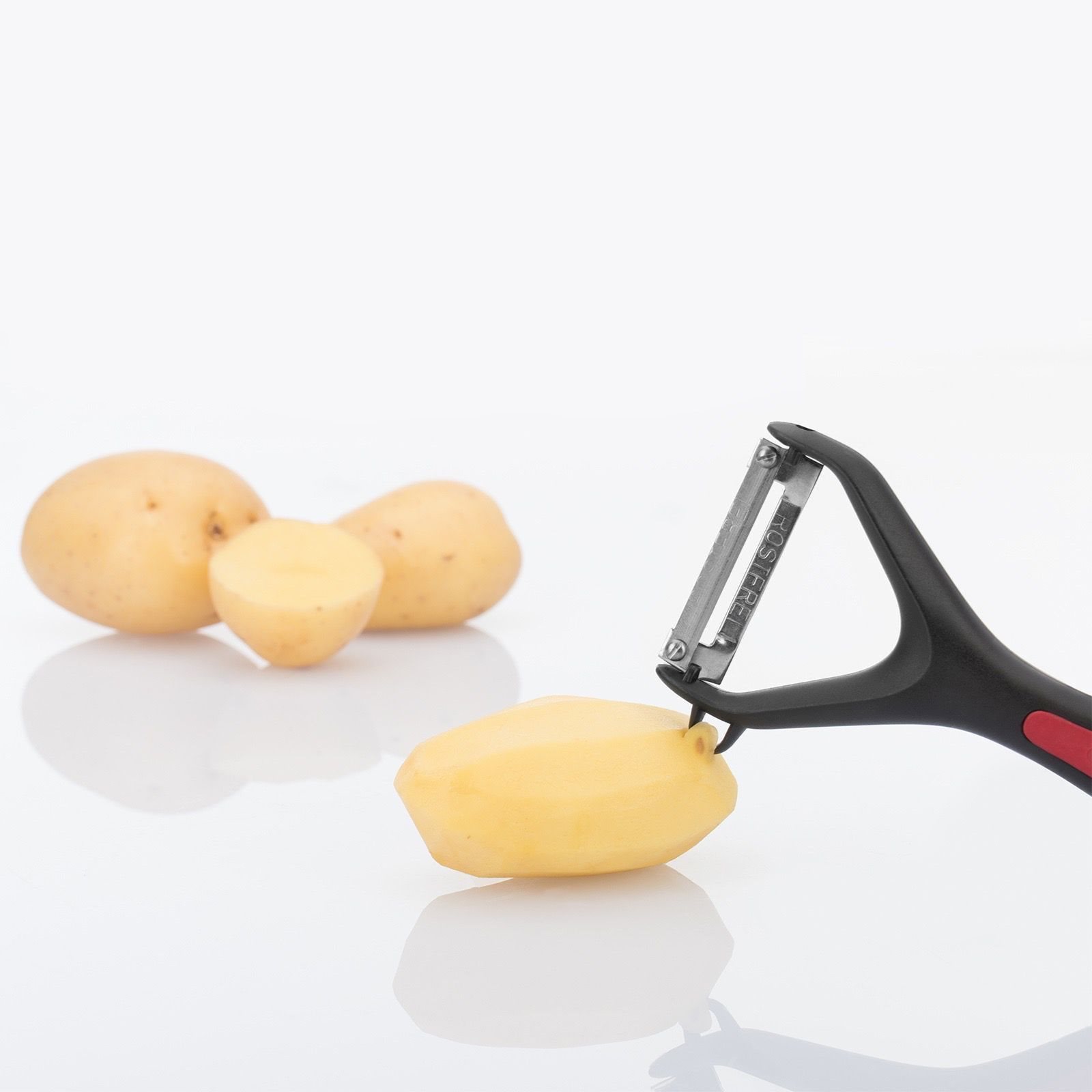 Белачката "Gallant" с подвижно острие е подходяща за почистване на кръгли или продълговати плодове и зеленчуци като аспержи, краставици, картофи и ябълки. Отстрани на инструмента има интегрирана примка, която помага за премахване на повредени петна и грозни петна.