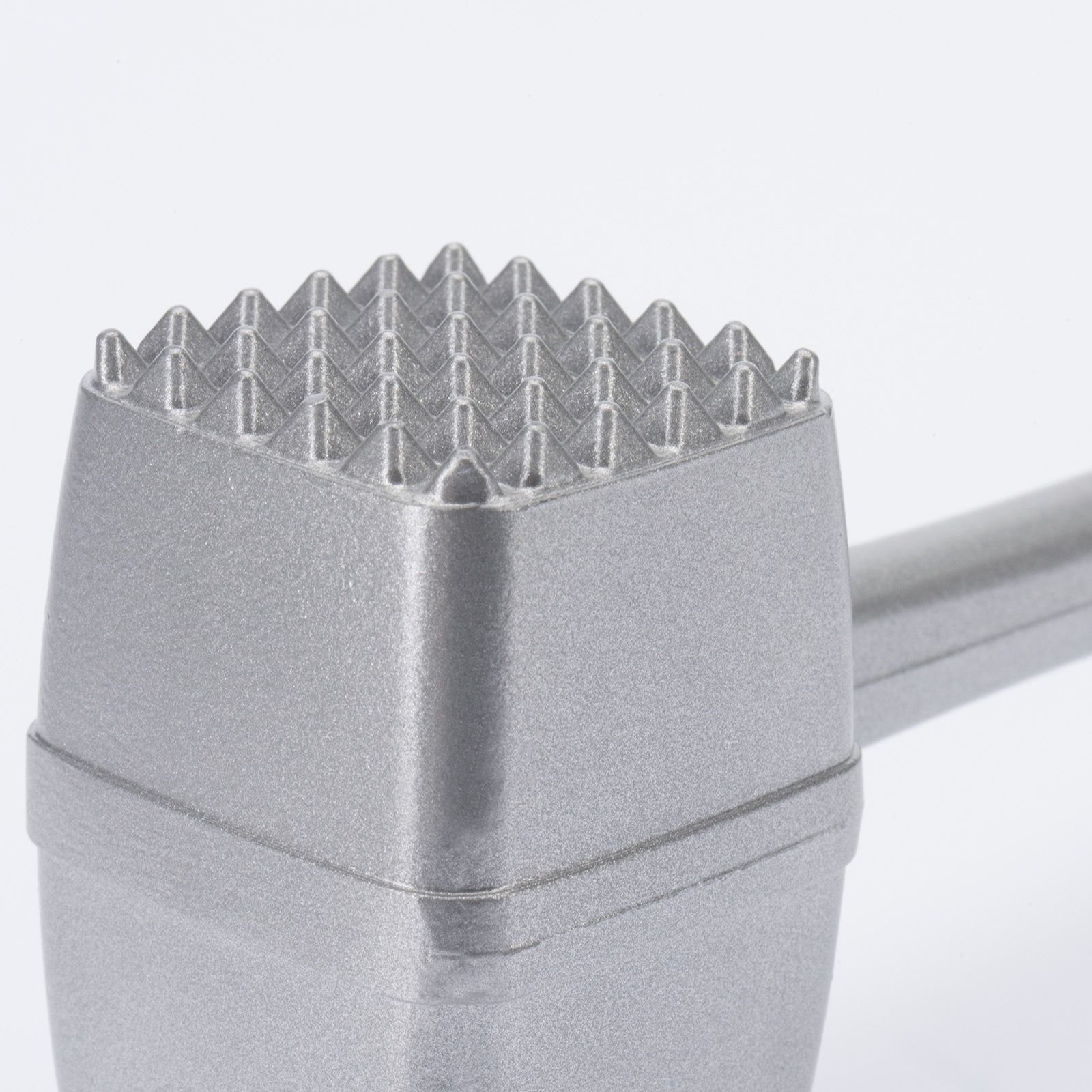 Westmark марка месо чук, от алуминий, с 2 различни повърхности за удряне на месото (един едър структуриран, за да нежни месото и един, предоставен с малки шипове). Шиповете са направени от неръждаема стомана.