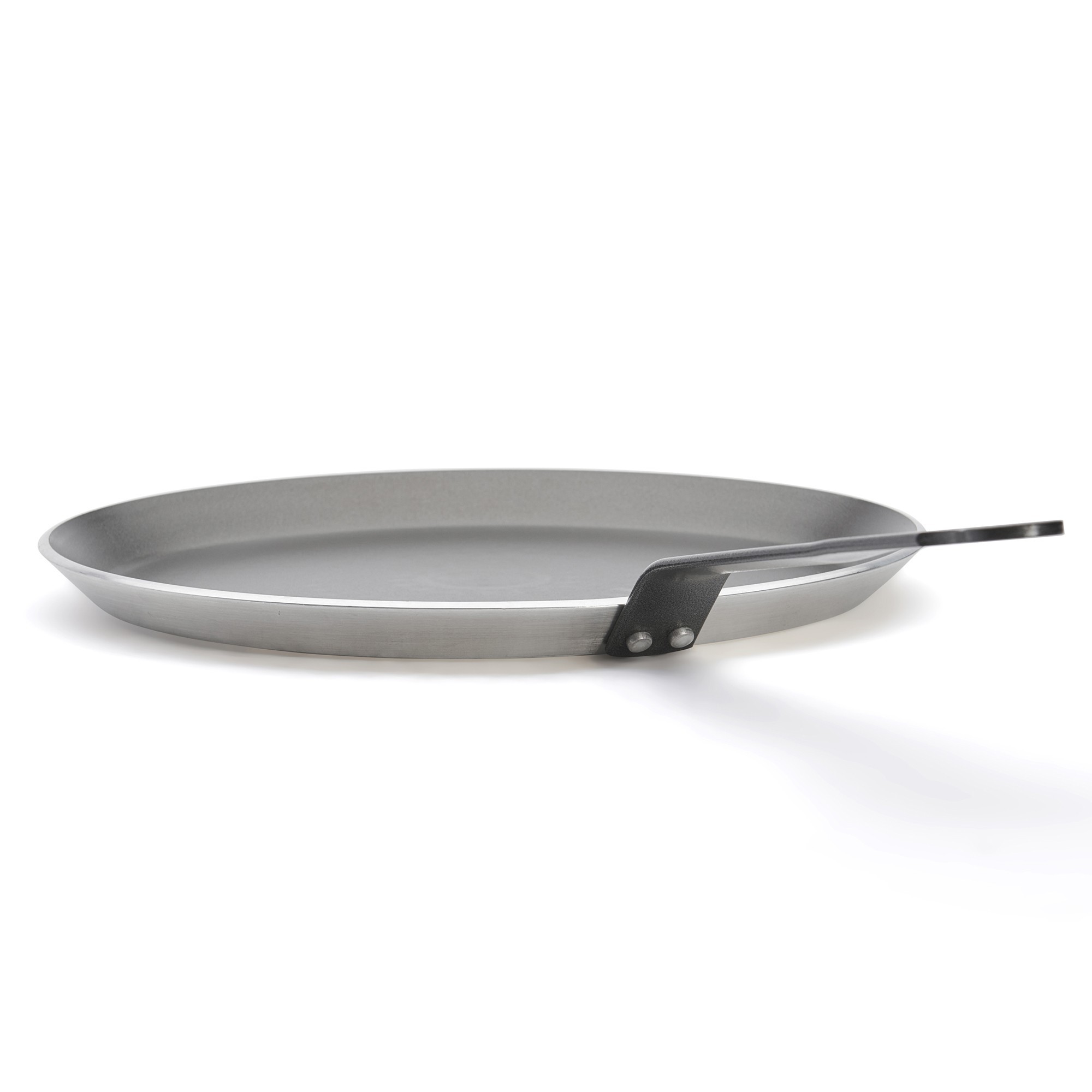 Професионална палачинка тиган, марка de Buyer, диаметър 30 см, височина 1,5 см, изработена от алуминий, дебелина 3,3 мм. Тиганът има незалепващо покритие от PTFE, състоящо се от 5 слоя, което не съдържа PFOA и има повишена устойчивост на драскотини.