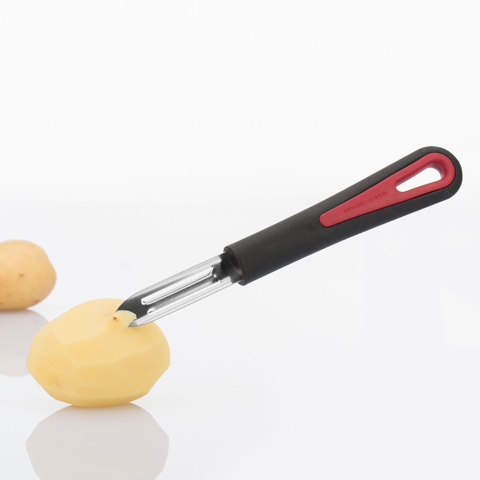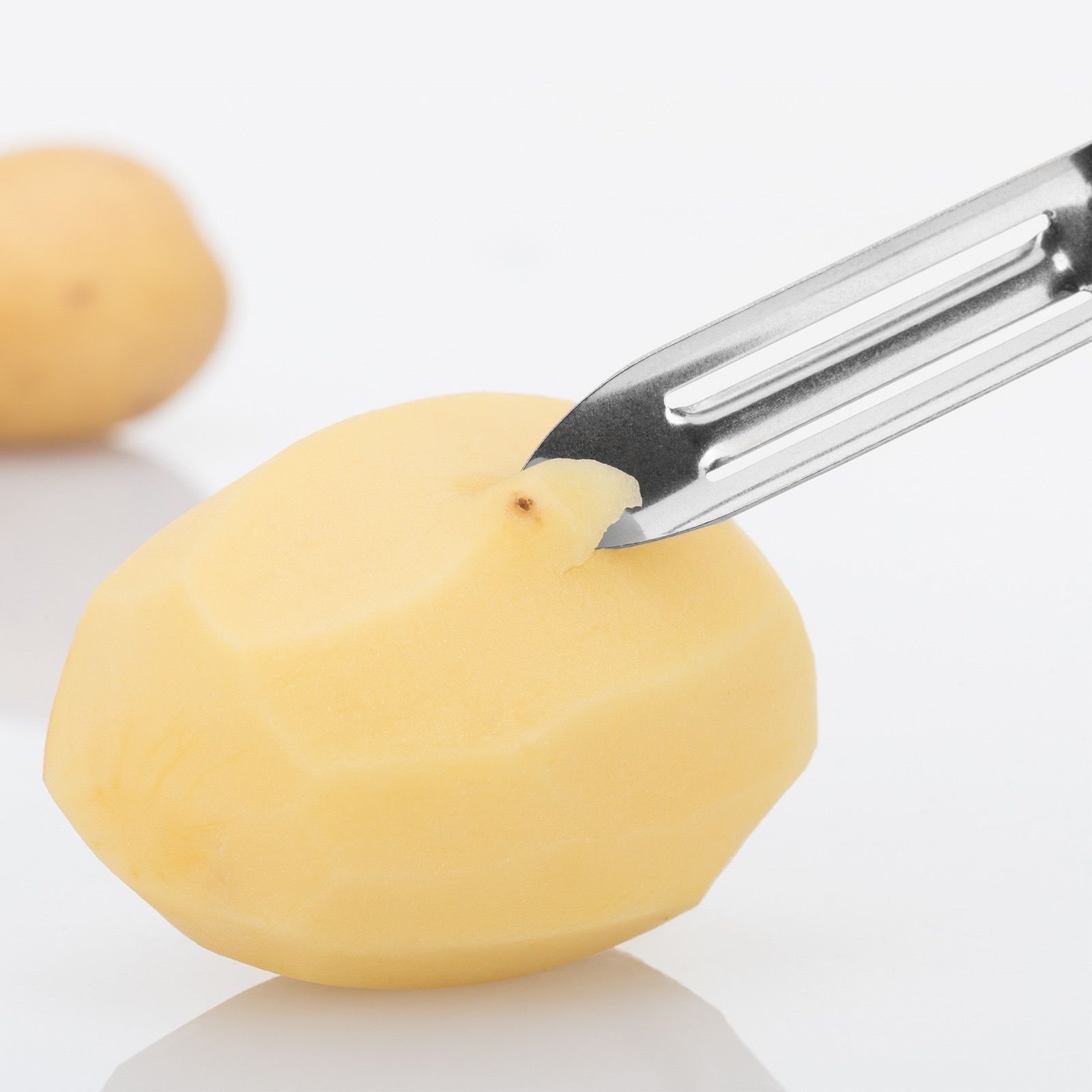 Пилингът за фиксирано острие от неръждаема стомана от Westmark е един такъв прибори, предназначен за бърз и ефективен пилинг на зеленчуци и плодове. Острият връх на пилинга служи за отстраняване на разглезените части от зеленчуци и плодове.
