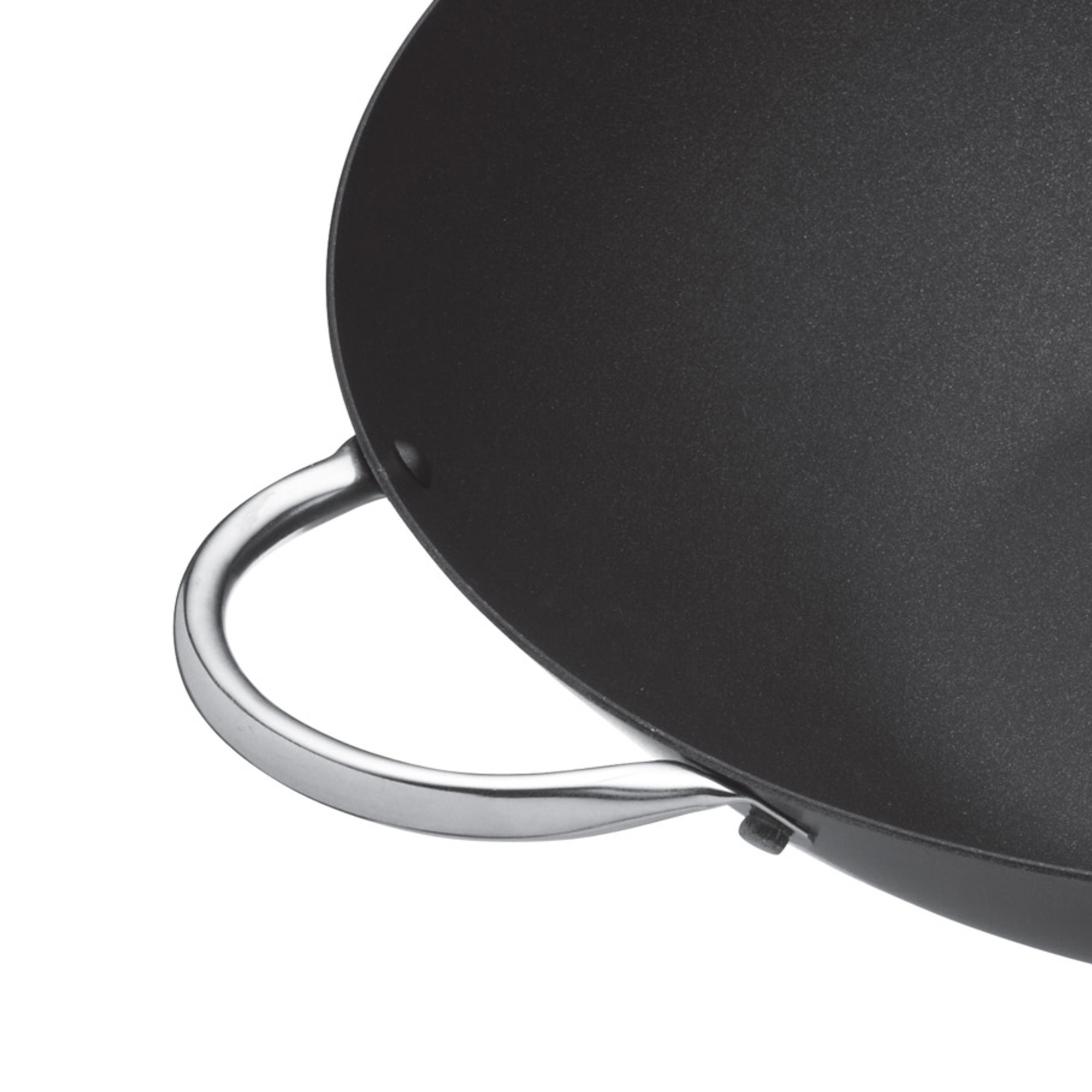 Уок с плоска основа, марка MasterClass с диаметър 35,5 см, изработен от въглеродна стомана с дебелина 2 мм, с изключително издръжливо незалепващо покритие.